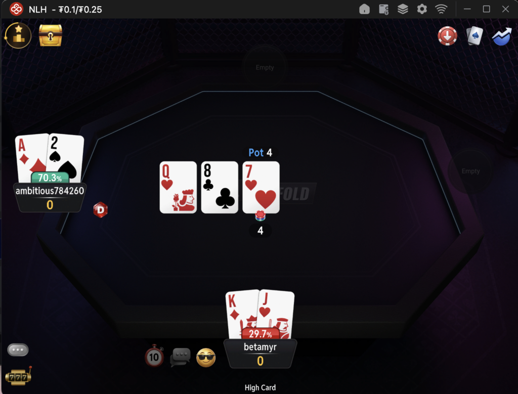 I play “All-In-or-Fold” only as pastime and not to win. The swings are brutal at times, and you can loose 4-5 stacks within a a few hands which can be pretty frustrating. Of course, you can also win a couple of stacks within a short period of time but in the end, there is only one big winner in this format: the bank or in this case CoinPoker:P
