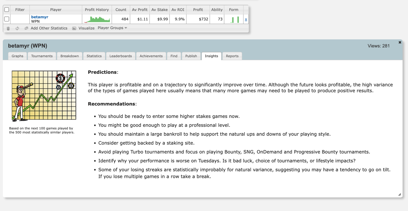 I went through downswings over 1000 tournaments and really know what I am talking / writing about. And this is why it is super important to have a very strong bankroll management as the screenshot from Sharkscope also suggests: